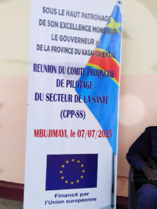 Une réunion de routine du comité provincial de pilotage de la santé s’est tenue le 7 juillet 2025, grâce au financement de l’Union Européenne, à travers le projet NDICI 2 géré par le Fonds de Développement des Services de Santé. Cette réunion consistait principalement en une présentation, suivie de la discussion et de la validation en plénière des directives pour l’élaboration des PAO 2025 de toutes les structures fonctionnelles qui ont été données dans l’alignement au Plan National de Développement Sanitaire. Ces directives ont permis d’orienter la planification opérationnelle 2025, à la base de la production des Plans d’Actions Opérationnels (PAO) 2025 à tous les niveaux (PAO consolidés des zones de santé et de la Province, PAO des unités fonctionnelles des zones de santé et PAO du bureau DPS, PAO de l’IPS).